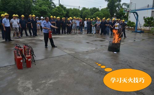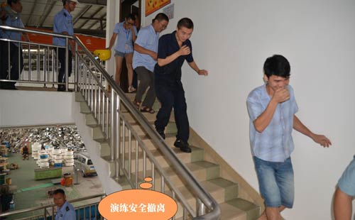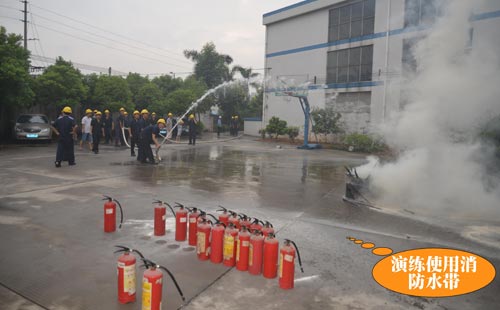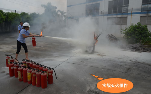 第二個環(huán)節(jié):演練緊急疏散,模擬情景是辦公樓內響起了火災警報,樓層內的人員緊急疏散撤離,員工們現學現用,按萬隊長所教的做法撤離現場。第三個環(huán)節(jié)是演練全廠范圍內員工接到了火災警報后逃生、救助的情形,這也就是救援組、滅火組、醫(yī)務組、后勤組、模擬傷員等角色的演繹。第四個環(huán)節(jié)就是由萬隊長教大家如何正確使用滅火器、如何快速安裝消防水帶等一系列滅火動作,湯總特別強調了正確救火的重要性。期間,進行了實戰(zhàn)滅火操作,不少員工親自動手體驗了用滅火器撲火的過程。